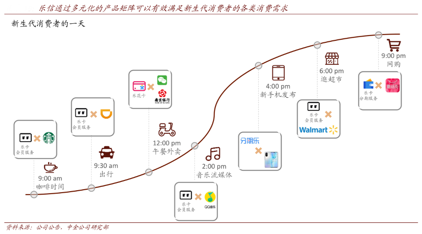 經(jīng)典案例:根據(jù)公司公告、中金公司研究部等綜合資訊表明,樂信主要聚焦于 18-36 歲的優(yōu)質(zhì)的年輕用戶,截至2020 年末,樂信用戶的平均年齡為 25 歲,平均授信金額為 13,018 元。在樂信 1.2 億的注冊(cè)用戶中,90 后及 95 后的占比高達(dá) 73%,其用戶具有高成長(zhǎng)性、高收入潛力、受過良好教育、高消費(fèi) 需求、有建立良好信用的意愿、對(duì)用戶體驗(yàn)有較強(qiáng)追求的特點(diǎn)。樂信通過多元化的產(chǎn)品矩陣可以有效滿足新生代消費(fèi)者的各類消費(fèi)需求。