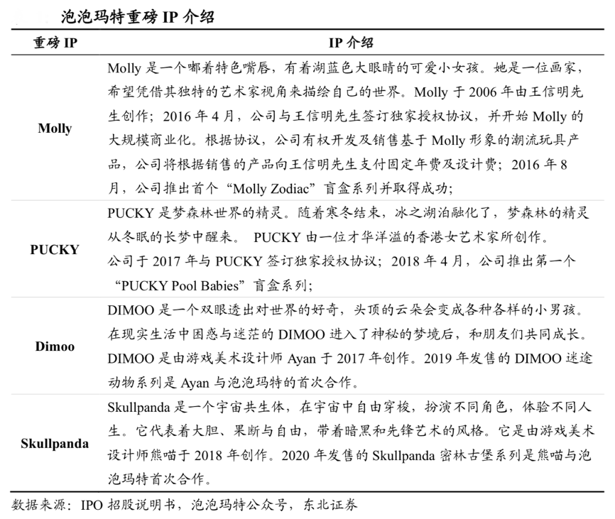 經(jīng)典案例:根據(jù)IPO招股說(shuō)明書(shū)、泡泡瑪特公眾號(hào)和東北證券等綜合資訊表明,泡泡瑪特自 2010 年成立至今,已陸續(xù)成功打造多款爆品,旗下熱門 IP 產(chǎn)品受到市場(chǎng)廣泛認(rèn)可,實(shí)現(xiàn)銷量快速增長(zhǎng)。
