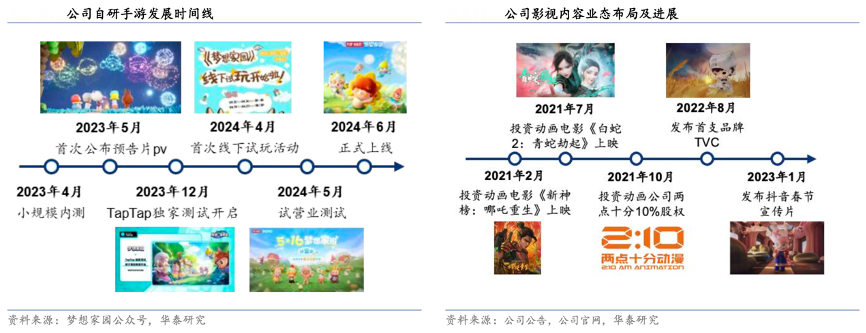 經(jīng)典案例:根據(jù)夢(mèng)想家園公眾號(hào)、公司官網(wǎng)、公司公告、華泰研究等綜合資訊表明,泡泡瑪特自研手游《夢(mèng)想家園》在 2023 年 5 月首度公布 PV,今年 6 月正式上線。游戲以家園 經(jīng)營(yíng)作為主體內(nèi)容,需要玩家規(guī)劃布局、做任務(wù)收集資源,并在這個(gè)基底上融入玩家間的 線上互動(dòng)派對(duì)玩法、各式小游戲等。玩家通過游戲中的抽卡獲得角色和道具,構(gòu)成付費(fèi)機(jī) 制。游戲當(dāng)中為 Molly、Dimoo、SP 等熱門角色設(shè)計(jì)了互動(dòng)臺(tái)詞和故事,豐富角色的內(nèi)涵, 增強(qiáng)玩家與 IP 間的情感連接。