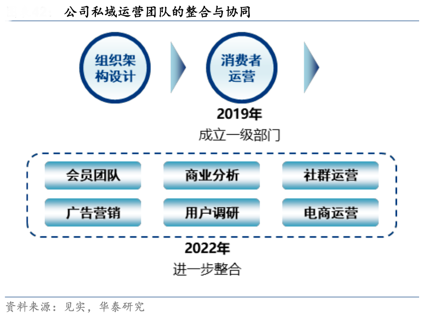經(jīng)典案例:根據(jù)見實(shí)、華泰研究等綜合資訊表明,泡泡瑪特公司的門店早期建立的是孤立的會(huì)員體系,目前已實(shí)現(xiàn)了全域會(huì)員的打通。截至 2023 年 3 月,公司在微信上已覆蓋 10 萬粉絲社群,其中 90%為玩家自發(fā)建立。新品、活動(dòng)信息在私域的精準(zhǔn)推送能夠有效激活粉絲購買欲,促成門店成交。