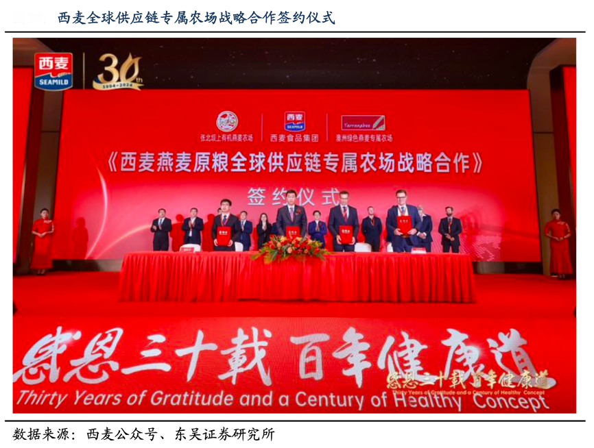 經(jīng)典案例:根據(jù)西麥公眾號、東吳證券研究所等綜合資訊表明,在產(chǎn)業(yè)鏈上游,西麥簽約全球公認(rèn)的好燕麥黃金種 植產(chǎn)區(qū)。從種子開始優(yōu)選中澳燕麥育種專家培育的專屬品種,共享“公司+基地+農(nóng)戶”信息資源。在產(chǎn)業(yè)鏈中游,西麥投入重金建設(shè)自有工廠。