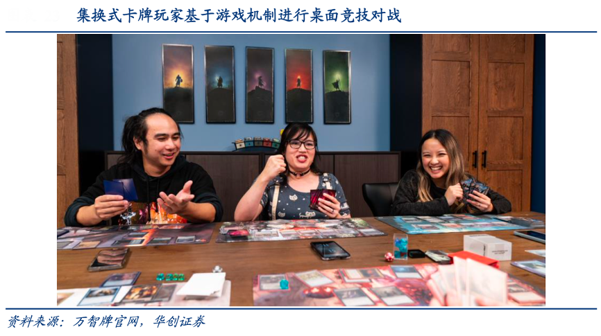 經(jīng)典案例:根據(jù)萬(wàn)智牌官網(wǎng)、華創(chuàng)證券等綜合資訊表明,集換式卡牌(尤其是競(jìng)技對(duì)戰(zhàn)類)往往具備一整套完整的游戲機(jī)制,玩家通過(guò)購(gòu)買、集 換卡牌來(lái)構(gòu)建自身牌組,通過(guò)策略組合來(lái)進(jìn)行桌面游戲競(jìng)技對(duì)戰(zhàn)。