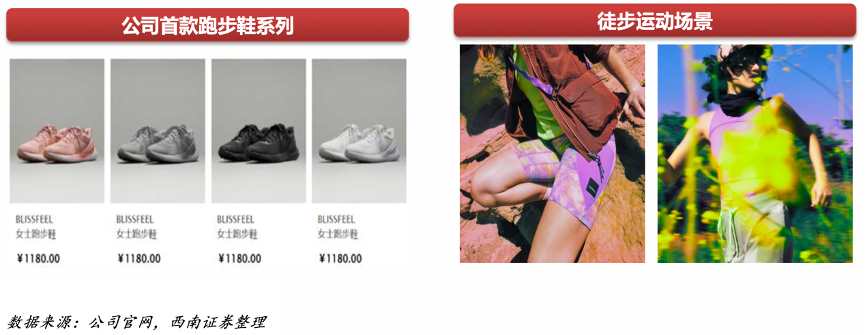 經(jīng)典案例:根據(jù)公司官網(wǎng)、西南證券等綜合資訊表明,2021年,Lululemon公司推出全球首 款專為女性設(shè)計的跑步鞋,開始試水跑鞋市場。近年推出的徒步系列,受到大自然和巖石的啟發(fā),在顏色上融入了天空的蘭、泥土的棕、烈日的黃、植物的綠和花卉的粉和紫,讓人們在登山時感覺與大自然 合而一體;此系列一推出就獲得了大批年輕消費者的追捧。