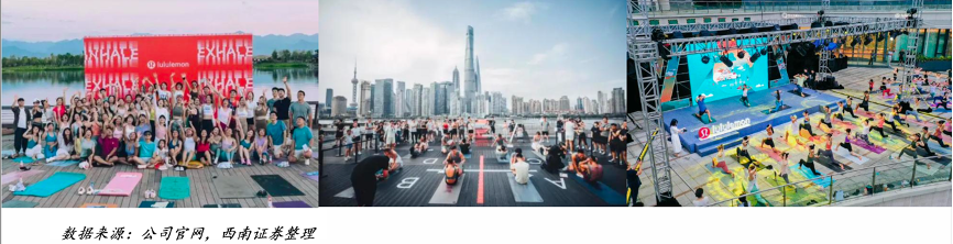 經(jīng)典案例:根據(jù)公司官網(wǎng)、西南證券等綜合資訊表明,有了社群營銷的模式以及educator作為品牌與客戶的紐帶,Lululemon會不定期的舉辦線下集群活動,如“熱汗節(jié)”、落日瑜伽、露天瑜伽派對等等,形成客戶、品牌、產(chǎn)品的閉環(huán),在精準(zhǔn)觸達目標(biāo)客群之后增強客戶粘性 。
