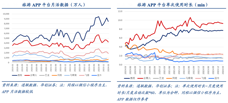 經(jīng)典案例:根據(jù)通聯(lián)數(shù)據(jù)、華創(chuàng)證券等綜合資訊表明,攜程用戶高粘性,通聯(lián)數(shù)據(jù)顯示,2023 年攜程和去哪兒 APP 月活用戶數(shù)平均值分別約 7800 萬(wàn)、4400 萬(wàn)人次,高于飛豬(2200 萬(wàn))、馬蜂窩(1000 萬(wàn))、同程(500 萬(wàn))、藝龍 (170 萬(wàn),同程和藝龍流量入口以微信小程序?yàn)橹?,此處?APP 月活數(shù),僅作參考)、途 牛(270 萬(wàn))。