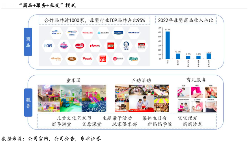 經(jīng)典案例:根據(jù)公司官網(wǎng)、公司公告、東北證券等綜合資訊表明,相對于其他線上平臺,孩子王平臺精準(zhǔn)對焦母嬰群體,縮短商戶與目標(biāo)客群的接觸距離,提高商戶的廣告投入產(chǎn)出效果,入駐商家有望逐漸提升。C端方面,主要開展涵蓋童樂園、互動活動和育兒服務(wù)的母嬰服務(wù),豐富的社交活動將不斷吸引更多母嬰客戶加入。