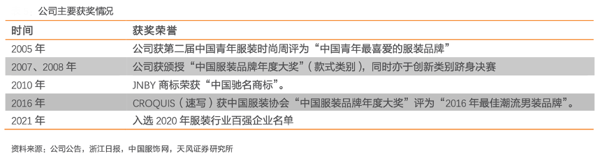 經(jīng)典案例:根據(jù)公司公告、浙江日?qǐng)?bào)、中國(guó)服飾網(wǎng)、天風(fēng)證券研究所等綜合資訊表明,江南布衣品牌理念為“自然、自我”,公司的核心價(jià)值為“更好設(shè)計(jì)、更好生活”,致力于打造中國(guó)最好的設(shè)計(jì)平臺(tái)。品 牌 多 次 獲 獎(jiǎng), 倍受 消費(fèi)者 認(rèn)可。