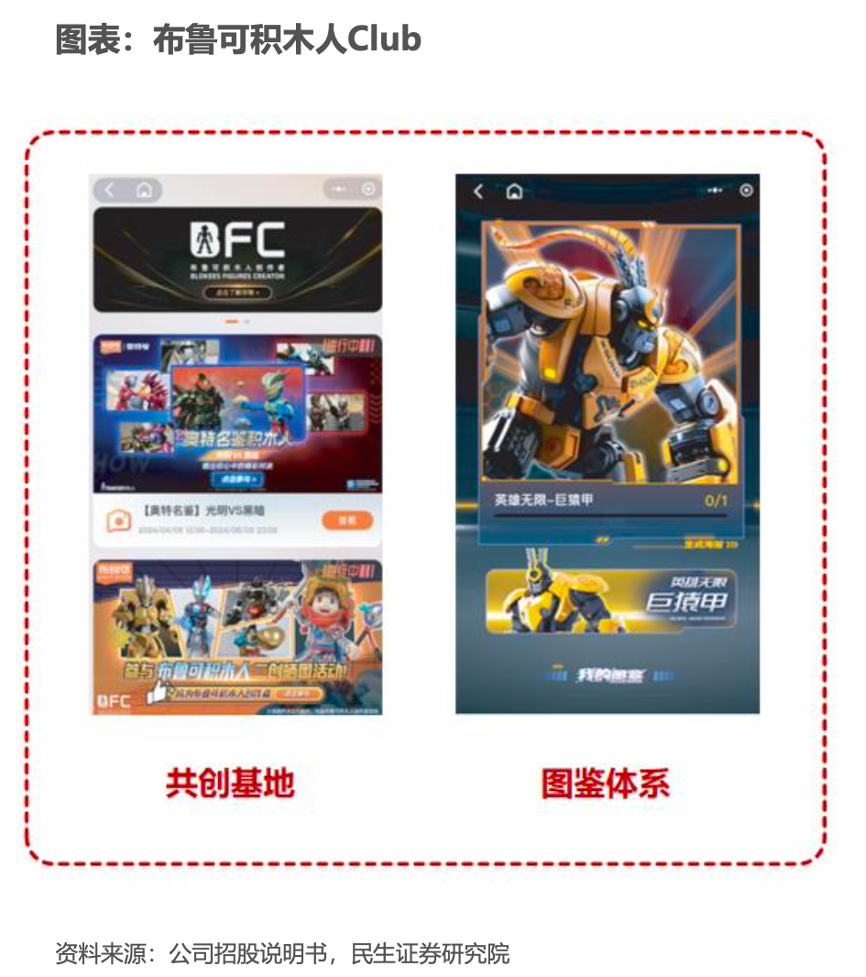經(jīng)典案例:根據(jù)公司招股說明書、民生證券研究院等綜合資訊表明,布魯可官方通過布魯可積木人Club中的「共創(chuàng)基地」功能舉辦投票活動,鼓勵消費者參與新產(chǎn)品的開發(fā)。得票最高的產(chǎn)品提案可能轉(zhuǎn)化為真正的產(chǎn)品。消費者可通過掃描產(chǎn)品包裝上的二維碼及產(chǎn)品附帶的角色身份卡在布魯可積木人Club上注冊其產(chǎn)品。