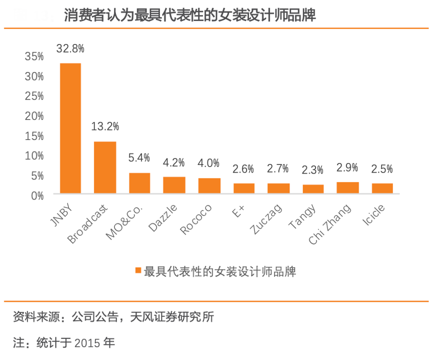 經(jīng)典案例:根據(jù)公司公告、天風(fēng)證券研究所等綜合資訊表明,中國(guó)設(shè)計(jì)師品牌時(shí)裝市場(chǎng)相對(duì)分散,2015 年以零售額 計(jì)算十大市場(chǎng)參與者占市場(chǎng)份額的 43.2%。集團(tuán)于 2015 年在設(shè)計(jì)師品牌時(shí)裝公司中取得最 高的零售額及 9.6%的市場(chǎng)份額,占中國(guó)總體服裝市場(chǎng)份額 0.2%,是 2015 年中國(guó)最大的設(shè) 計(jì)師品牌時(shí)裝公司。
