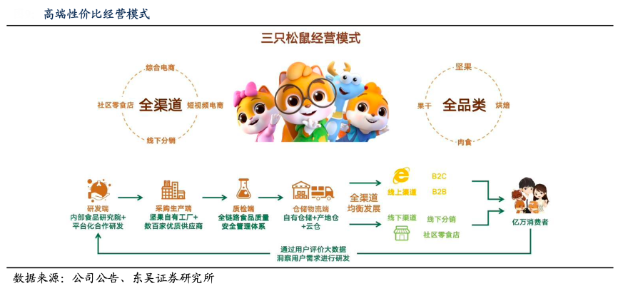 經(jīng)典案例:根據(jù)公司公告、東吳證券研究所等綜合資訊表明,三只松鼠公司提出“高端性價比”戰(zhàn)略,其強調(diào)以新市場需求為導向、以消費 者為核心,通過對整個產(chǎn)業(yè)鏈和關鍵要素的深度整合和優(yōu)化,實現(xiàn)“鏈路更短、工具更 先進、組織更協(xié)同”。