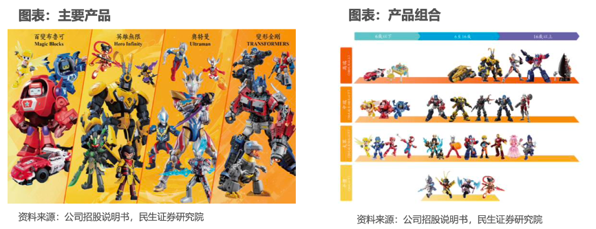 經(jīng)典案例:根據(jù)公司招股說明書、民生證券研究院等綜合資訊表明,布魯可抓住市場(chǎng)機(jī)遇,致力于通過布魯可創(chuàng)新體系,創(chuàng)造全球領(lǐng)先的拼搭角色類玩具,滿足消費(fèi)者對(duì)互動(dòng)體驗(yàn)及IP角色還原的普遍需求。布魯可構(gòu)建了網(wǎng)格化的廣泛產(chǎn)品組合,包括豐富的SKU、完整的價(jià)格帶和多樣的IP矩陣,為消費(fèi)者提供了豐富的選擇。截至2024年3 月31日,布魯可共有391款在售SKU,覆蓋不同年齡段。