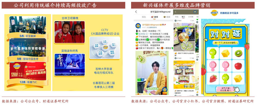 經(jīng)典案例:根據(jù)公司公眾號(hào)、公司官方小紅書、公司官方微博、財(cái)通證券研究所等綜合資訊表明,妙可藍(lán)多公司當(dāng)前處于 C 端產(chǎn)品豐富化、人群拓圈的關(guān)鍵時(shí)期,奶酪棒老 IP 汪汪隊(duì)覆蓋人 群以兒童為主,相對(duì)有限,新 IP 的導(dǎo)入可以針對(duì)不同產(chǎn)品、場景進(jìn)行精準(zhǔn)定位。