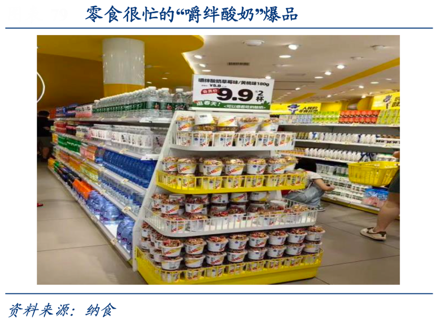 經(jīng)典案例:根據(jù)納食、華創(chuàng)證券等綜合資訊表明,零食很忙全力打造“嚼絆酸奶”爆品。