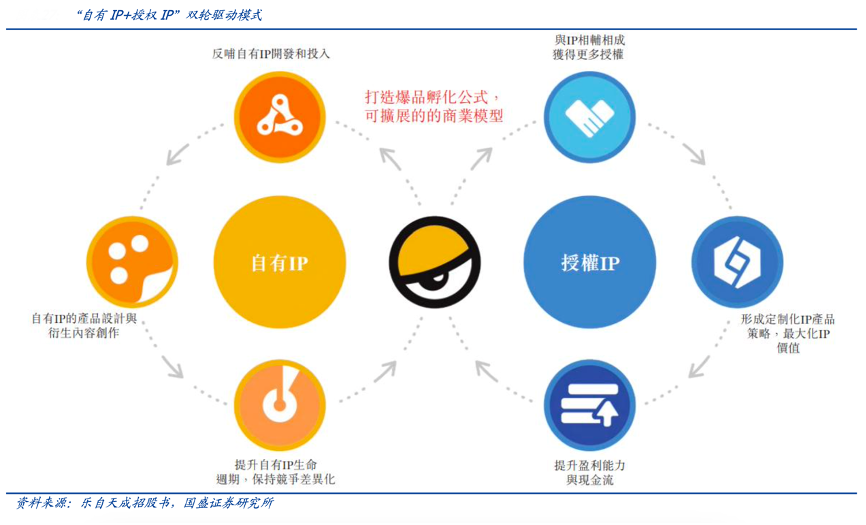 經(jīng)典案例:根據(jù)樂(lè)自天成招股書(shū)、國(guó)盛證券研究所等綜合資訊表明,樂(lè)自天成公司以“IP中樞”戰(zhàn)略為核心,打造了覆蓋全產(chǎn)業(yè)鏈的一體化運(yùn)營(yíng)體系。